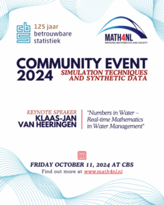 The 2024 Math4NL Community Event took place on Friday October 11 at the CBS. The theme for this event was “simulation techniques and synthetic data”.
